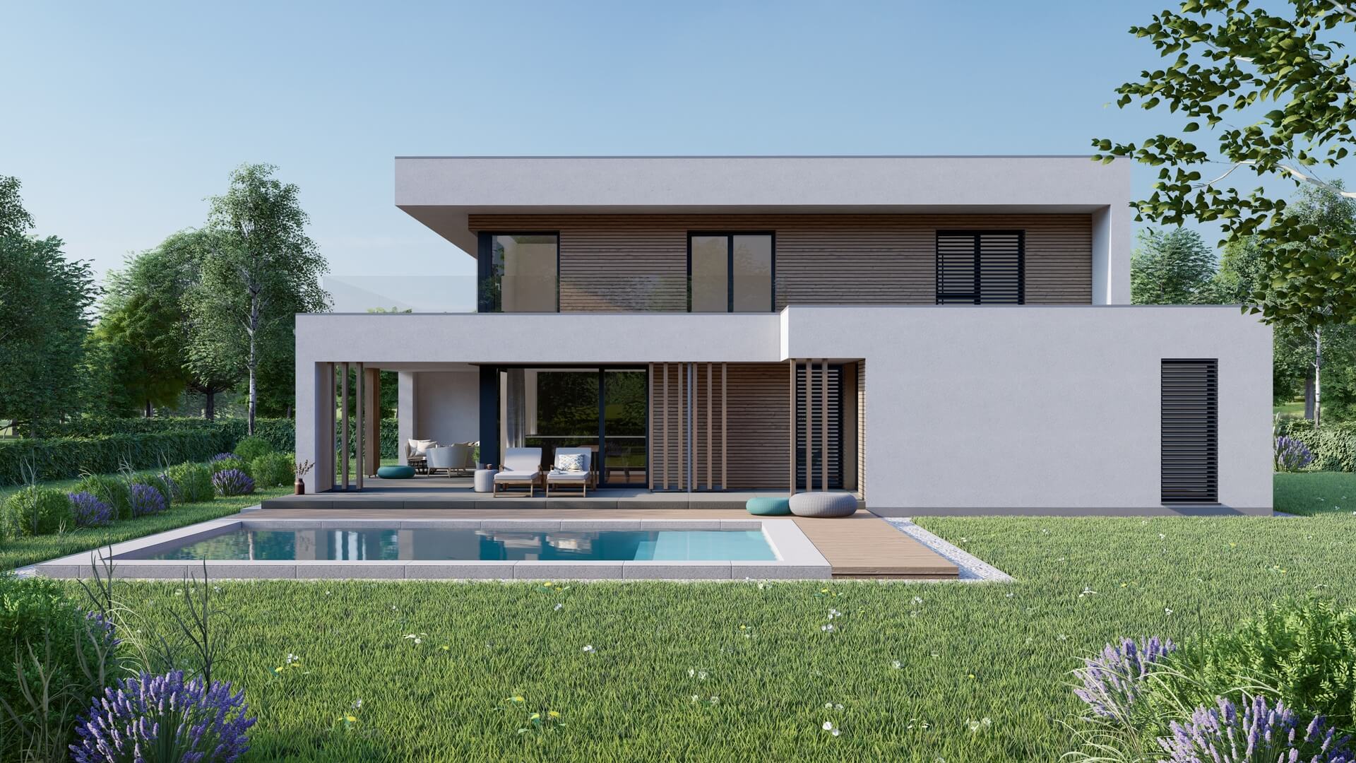 Hiša Varius-R 206 ponuja 206 m² bivalnih površin in 48 m² pokrite terase, ki služi kot zunanja dnevna soba. Iz odprtega pritličja nas odprto stopnišče vodi v nadstropje, v katerem najdemo udoben otroški del (prostorni otroški sobi s kopalnico), spalna suita staršev s teraso pa zagotavlja zasebnost in mir. Na voljo je tudi v manjših različicah (152 m² in 173 m²).