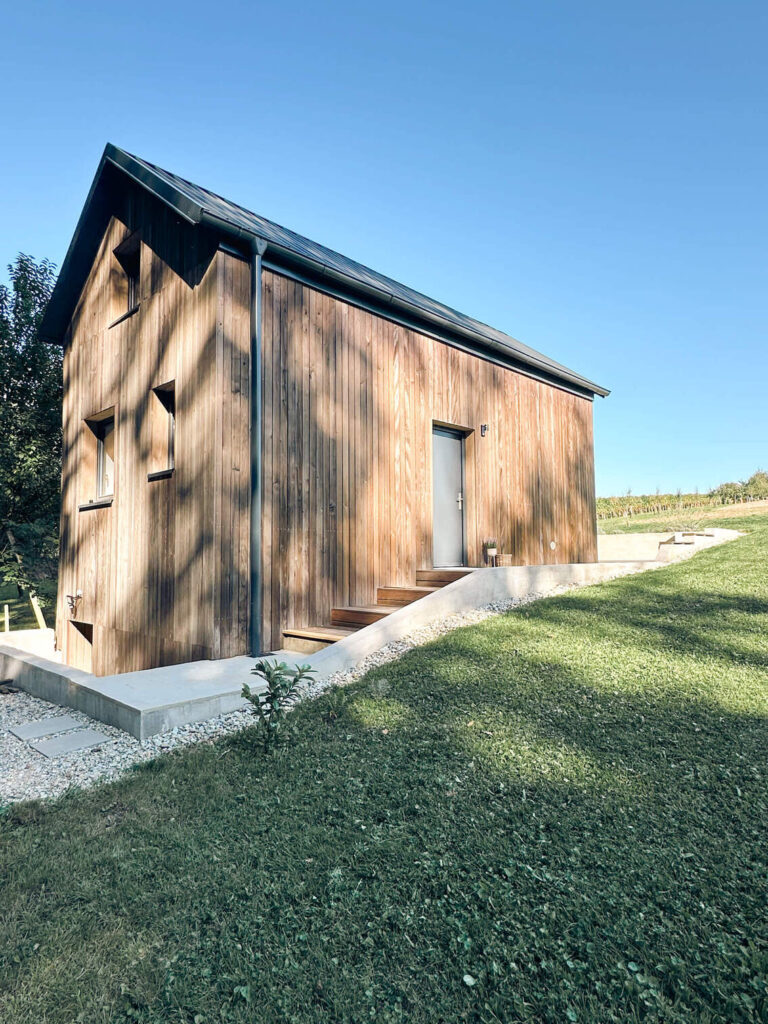 Na obrobju gričevnatega Goričkega, tik ob obronku gozda, stoji majhna hiška, ki na prvi pogled deluje kot minimalistična sanjska počitniška rezidenca. V resnici pa je veliko več: je zgodba o vztrajnosti, učenju, samostojnosti in ljubezni do lesa. Njena lastnica, grafična oblikovalka Suzana Pal, je iz nekdanje vinske kleti ustvarila topel, skandinavsko navdihnjen tiny house – skoraj povsem z lastnimi rokami in brez pomoči arhitektov.