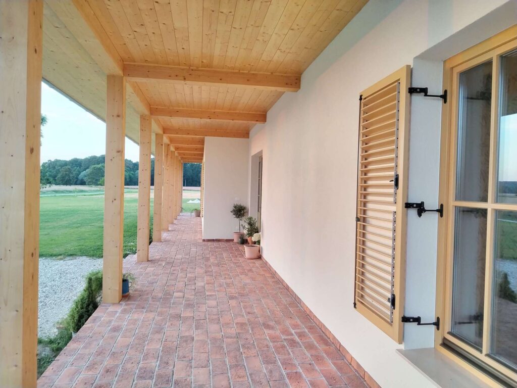 Lastnika sta imela jasne želje glede velikih zunanjih površin – verande in terase – arhitekta pa sta ju spretno povezala s tradicionalnimi elementi in sodobnim načinom bivanja. Tako je nastala hiša, ki ohranja prepoznavno linearno silhueto, obenem pa ponuja odprte, svetle in funkcionalne prostore.