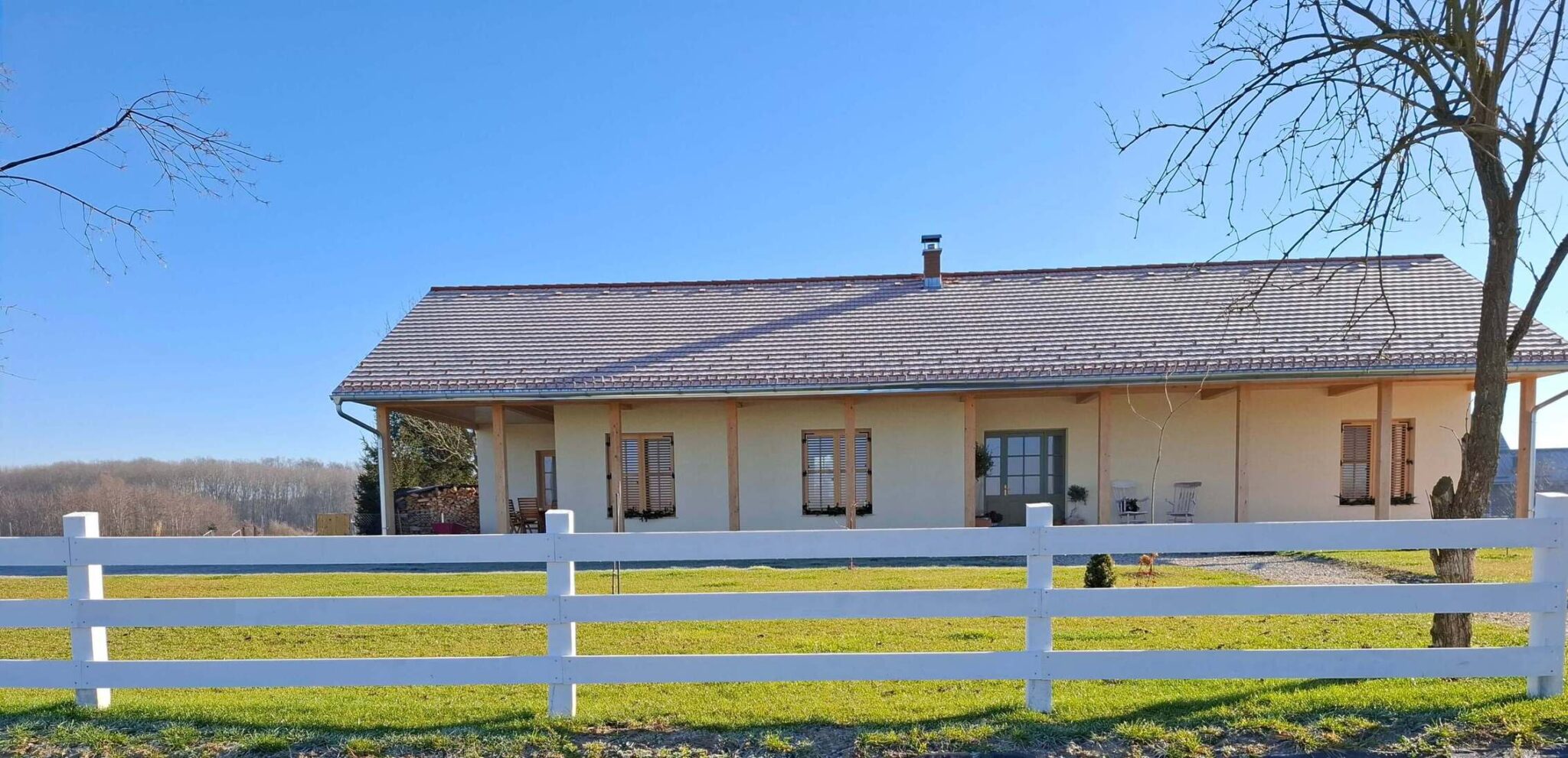 V občini Dobrovnik, na skrajnem robu mirne prekmurske vasi, stoji nova enodružinska hiša, ki na prefinjen način združuje tradicijo lokalnega okolja in sodobne bivalne standarde. Investitorja, oba domačina iz Prekmurja, sta iskala veliko, a ravno prav mirno parcelo. Nastala je pritlična hišica, ki se z zunanjo verando in teraso na subtilen način povezuje z okolišem.
