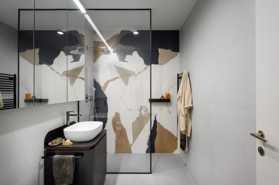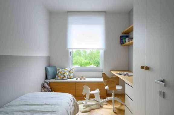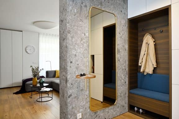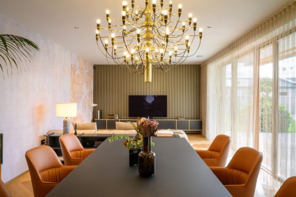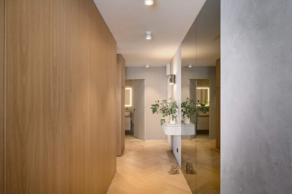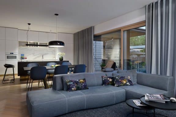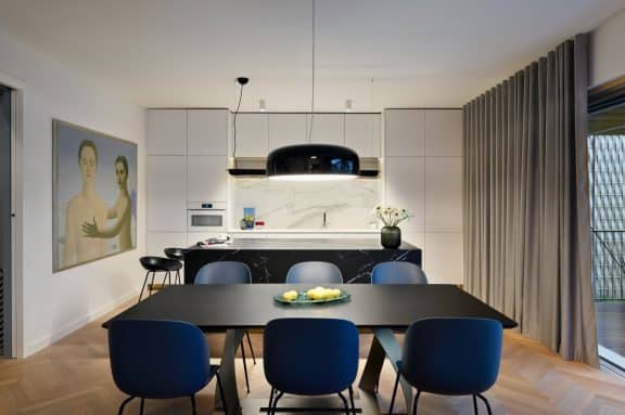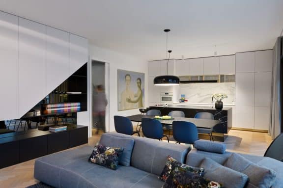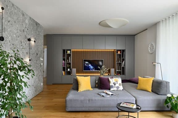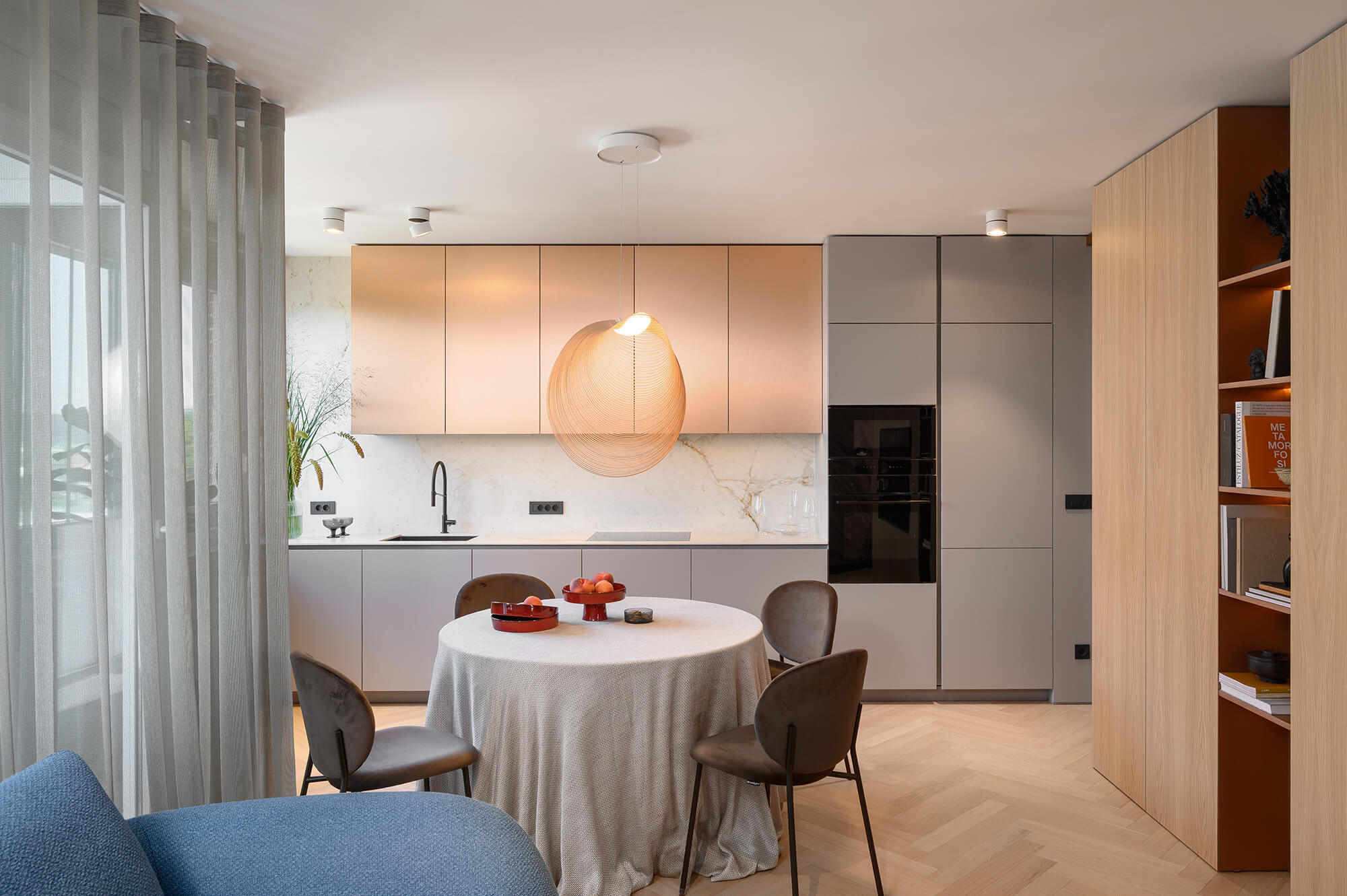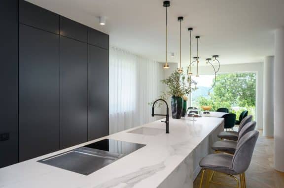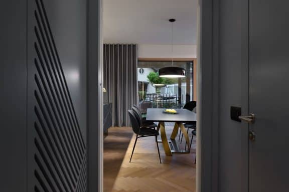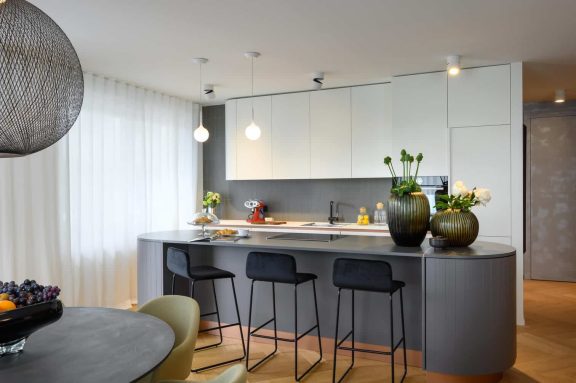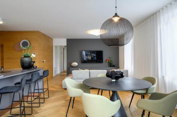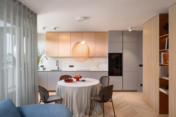 Pri oblikovanju sodobnega stanovanja za mlado družino, ki biva med Slovenijo in tujino, je bila ključna naloga združiti estetski videz in funkcionalnost.