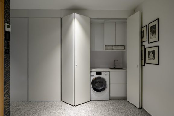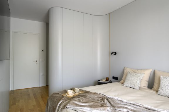 Ljubljansko stanovanje, veliko 86 m², je zasnovano za par, ki je želel kar najbolje izkoristiti razpoložljivo površino.