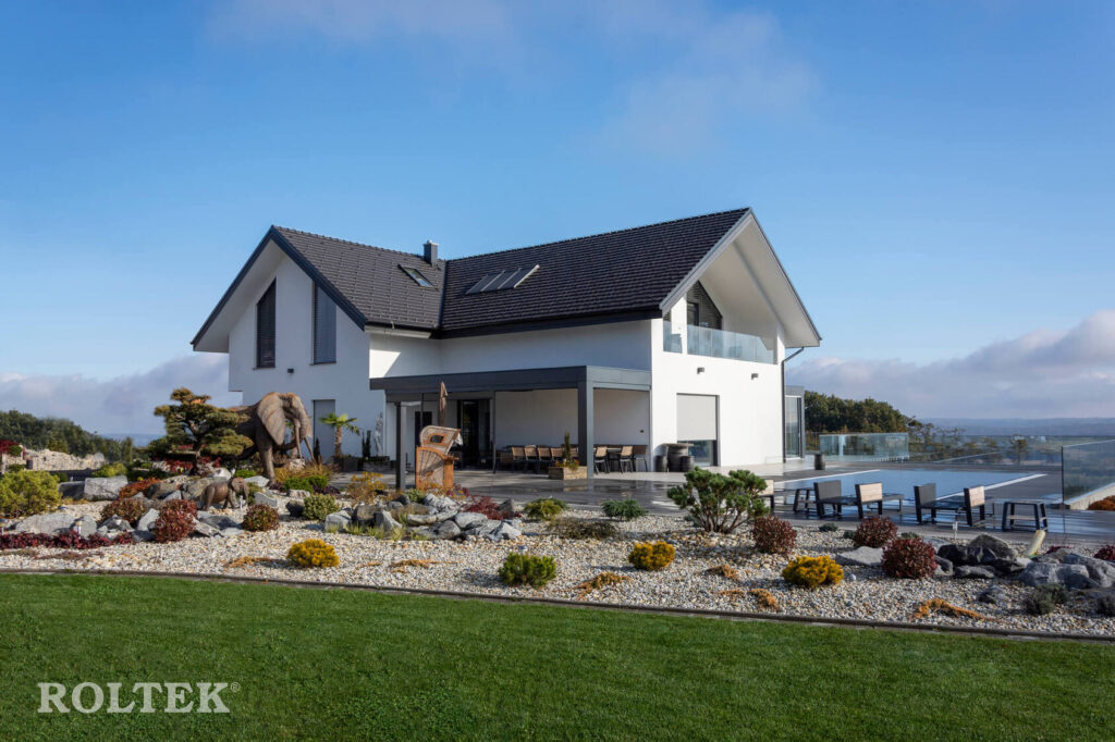 Na Goričkem, pokrajini, znani po mehkih valovitih gričih, obilici sonca in tudi vetra, stoji sodoben objekt, ki so ga lastniki premišljeno opremili z napredno kombinacijo različnih senčil. Ker so si želeli energetsko učinkovitega bivanja z veliko naravne svetlobe in neokrnjenimi razgledi, so izbrali rešitve ROLTEK – od ZIP screen senčil OLIMP za okna in senčenje zimskega vrta do poševnih zunanjih žaluzijah TERO in komarnikov. Rezultat je hiša, v kateri se tehnologija, estetika in udobje brezhibno dopolnjujejo ter dvigujejo kakovost bivanja na povsem novo raven.
